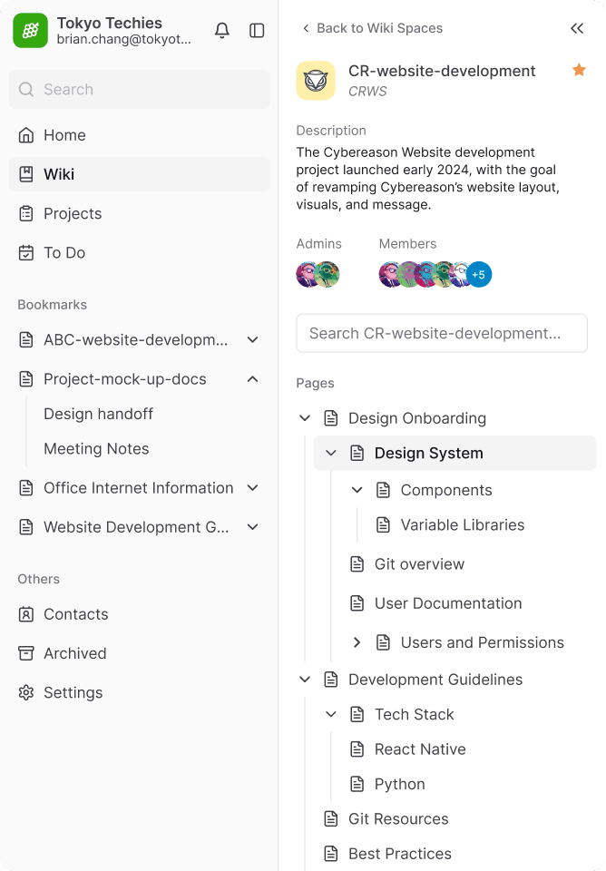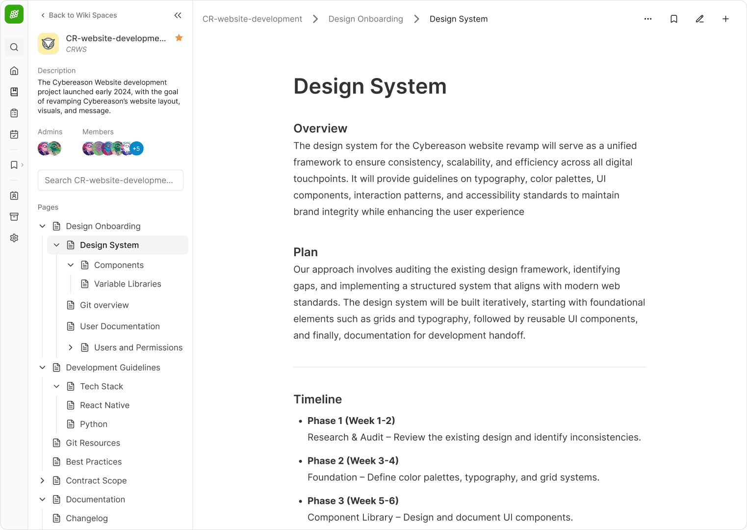 Iteration 1: Full page with an expanded sidebar and a Wiki document