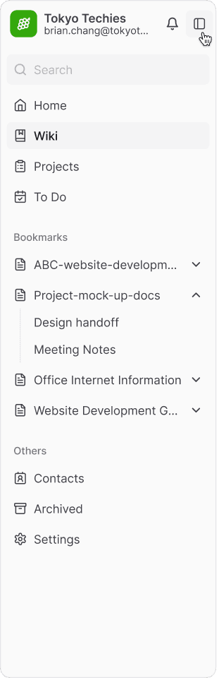 This separation allowed the primary sidebar to remain fully focused on core navigation while the secondary sidebar could adapt to specific needs for each app, such as document trees, settings, and notifications.