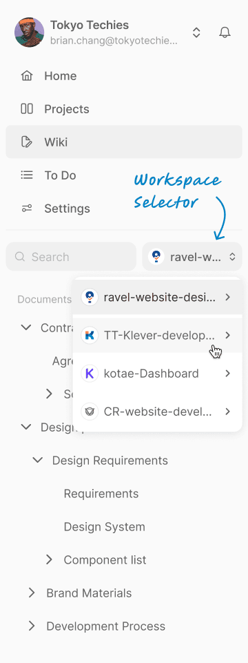 Iteration 1 interaction: Opening a workspace's wiki in the sidebar