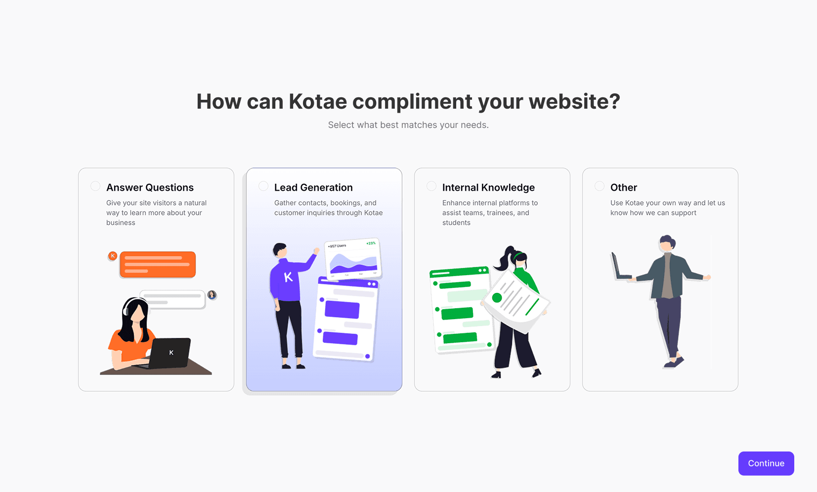 Step 3: Ask the user how Kotae will compliment their website