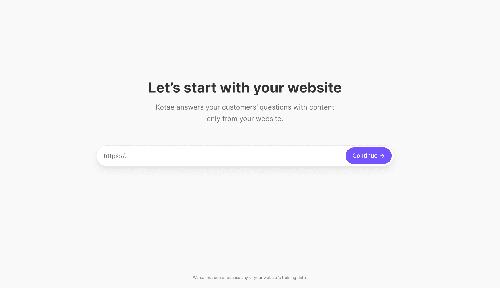 Step 1: Make the process personal by prompting users to train Kotae with their own company website