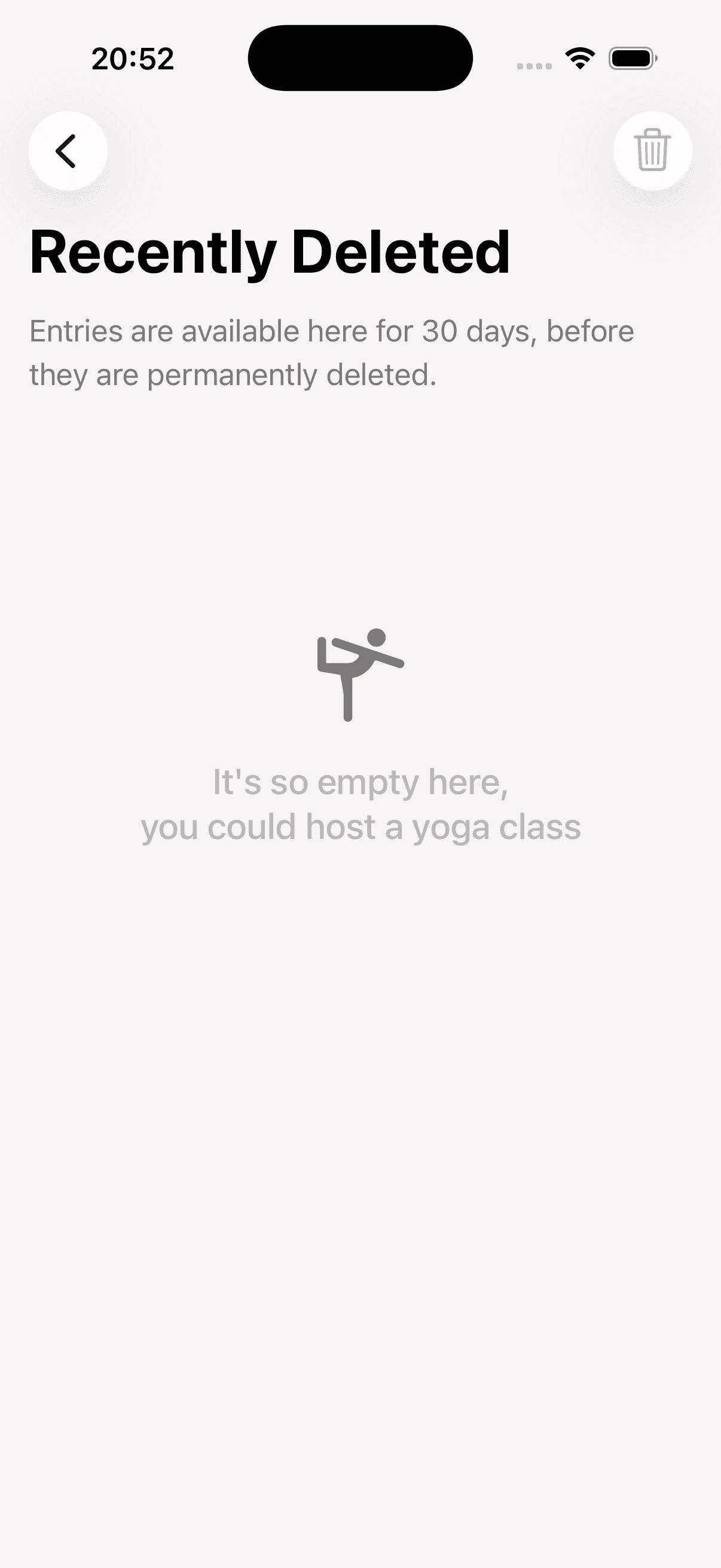 Or, because I've been really enjoying yoga lately, I made a fun use of the Recently Deleted's empty state message to express my love for the practice.